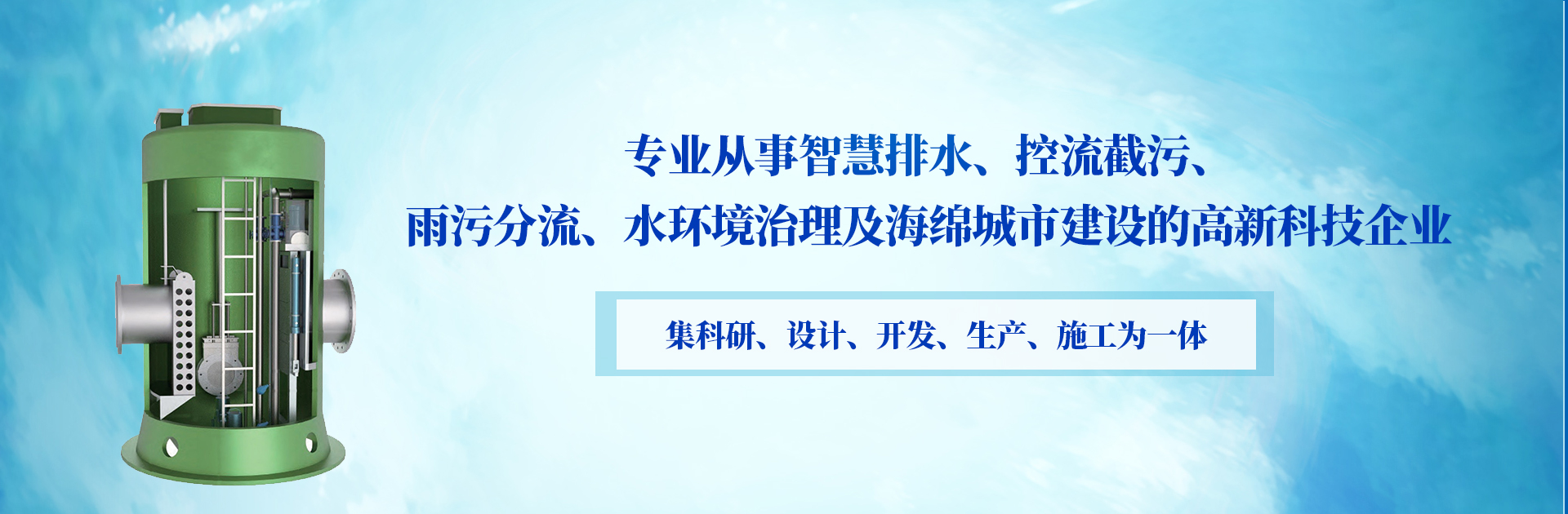 我公司集科研、設計、開發、生產、施工為一體,主要產品有智能截流井、下開式堰門旋轉堰門、智能平板閘,一體化預制泵站、一體化智能截流井、一體化泵閘、配套云服務平臺。